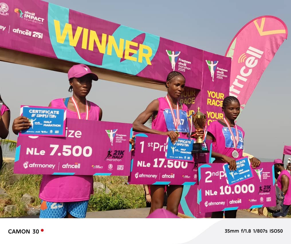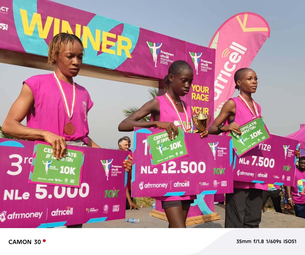 The Minister of Sports, Madam Augusta James-Teima, has commended Africell for its sustained support in organizing the annual marathon event, which brought together athletes, sponsors, and dignitaries in Freetown on December 7, 2025. The event, which aimed to promote sports development and unity in Sierra Leone, attracted key stakeholders, including the Minister of Information, Hon. Chernor Bah, representatives from the British High Commission, and members of the Sierra Leone Association of Journalists (SLAJ).