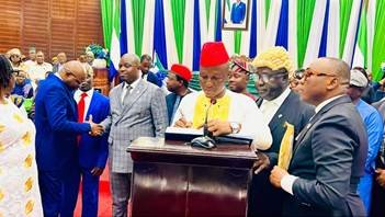 Pursuant to Section 83 of Act No. 6 of the 1991 Constitution of Sierra Leone and Standing Order 1(A) Speaker Thomas then invited the Clerk of Parliament to administer the Oath. The Acting Clerk of Parliament, Gilbert Bosco N’habay, accompanied by the parliamentary leadership, administered the Oath of Office for MPs to Hon. Mohamed Shebora Bangura, who afterwards was presented copies of the Standing Orders and the 1991 Constitution of Sierra Leone for procedural guidance and effective debate during the course of proceedings in Parliament.