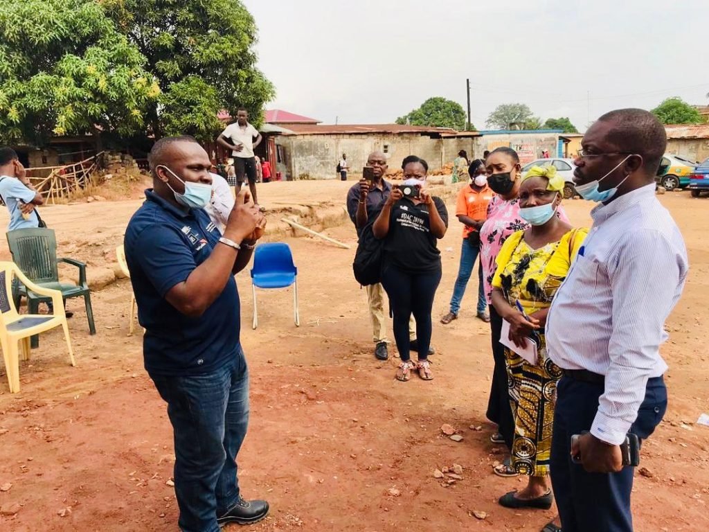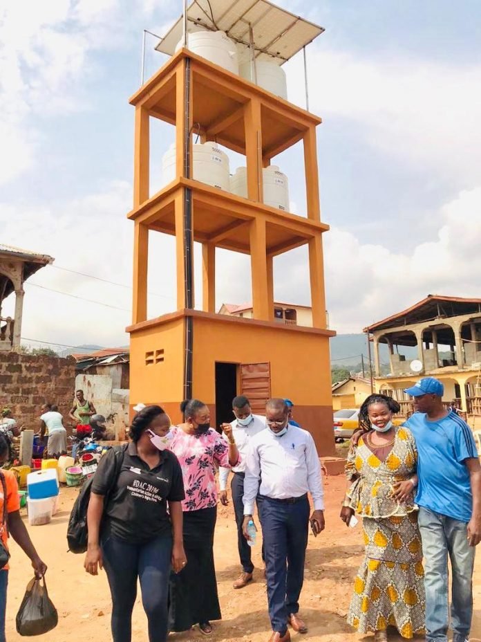 The site visit was to inspect the constructed and ongoing construction of the solar panel boreholes in three (3) separate communities in Ward 402 (Calaba Town), Ward 399 (Upper Allen Town) and Kissy. The visit was to also engage communities on the importance of the project. The construction of the boreholes would target over 6000 beneficiaries in schools, markets, hospitals and communities in each of the wards.